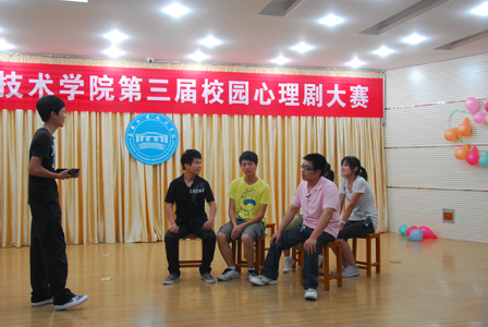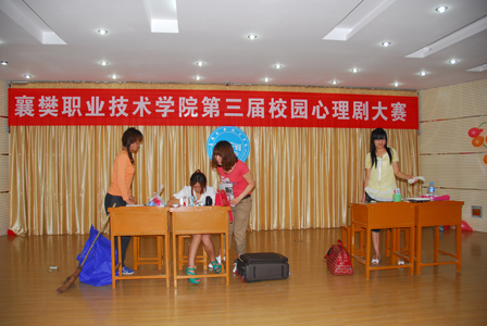 2011年6月8日晚,由学院学工处学生心理健康教育咨询服务中心主办,院心理协会协办的襄樊职业技术学院第三届校园心理剧大赛决赛在南校区学术报告厅举行,学院副院长程光富,学工处处长章伟及200余名师生观看了此次比赛。