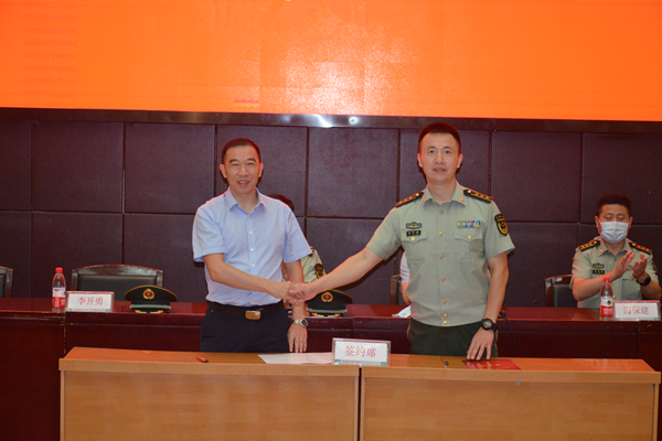 武警襄阳支队副政委李开勇、学校副校长章伟签订军民共建培训基地协议