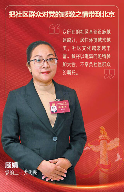 相关链接:【一名党员一杆旗·党的二十大代表风采录】顾娟:努力打造社区治理的“王家河样板”http://news.hubeidaily.net/hubeidailyshare/#/news_detail?contentType=5&contentId=1111908&cId=0&tencentShare=1