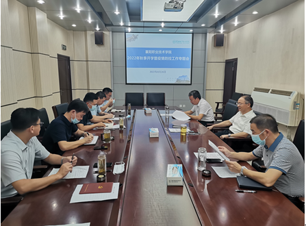 8月26日下午,学校召开专题会议,研究部署2022年秋季开学工作。校长李菲,副校长余荣宝、章伟,院长办公室、教务处、学工处、保卫处、后勤产业服务总公司等部门负责同志参加会议。