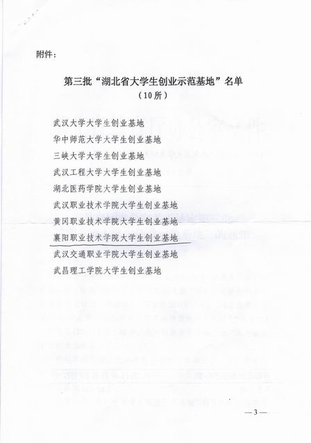 近日,从湖北省教育厅传来喜讯,我校获得第三批“湖北省大学生创业示范基地”称号,全省共有10所高校(其中高职高专4所)大学生创业基地获得此称号,每个基地将获得10万元创业基地建设扶持资金。
