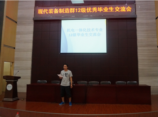 为进一步加强现代制造专业群学生对就业、创业形势的认识,在院领导,学工科的大力支持下,现代制造专业群邀请了本专业12届优秀毕业生黄普、孙春、张吉硕为13、14级学弟学妹们做实习经验交流,分享经验。