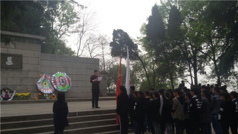当天下午,师生们徒步来到革命烈士陵园,胸前佩戴白花,列队向烈士纪念塔、烈士墓敬献花圈并鞠躬、默哀,传达出大家对革命先烈们的崇高敬意和深切缅怀。随后,学生代表向革命先烈献词,并敬上了鲜花与挽联。最后李新光老师对本次活动作总结性发言。仪式结束后,同学们瞻仰了烈士陵园,并自觉清扫了周围的垃圾,营造了良好的园区环境。