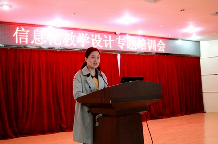 培训会上,胡生梅副教授作了题为《浅谈信息化教学设计》的专题报告,从理论与实践相结合的角度,对信息化教学设计的概念、特征、要素等内容作了深入浅出的阐述,并对信息化教学设计竞赛的评分指标体系作了详细的解读。胡老师还结合自己参加全国信息化教学设计大赛的获奖作品,畅谈了自己的个人感受。她呼吁与会的老师们积极行动起来,主动跟上现代信息技术迅猛发展的步伐,转变教学观念,提升教学能力,这样会发现一个全新的自己。