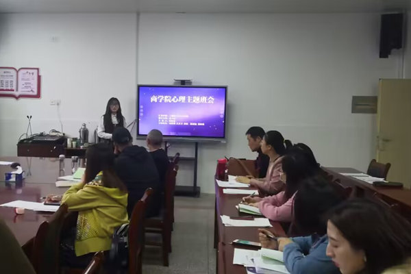 4月9日下午6点,第一届心理健康主题班会策划大赛优秀团队——商学院大数据与会计2204班主讲人张舒涵,在师范学院和商学院班主任例会上进行心理班会活动宣讲。