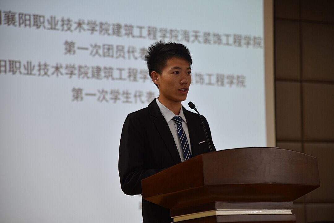 11月1日上午,共青团襄阳职业技术学院建筑工程学院海天装饰工程学院第一届团员代表大会、学生代表大会在特教楼学术报告厅举行,出席此次会议的领导有党总支书记李红、院长李炳顺、学院团委副书记别菊珍、兄弟院系的来宾以及相关人员。
