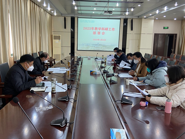 1月3日上午,校长李菲在厚德楼五楼会议室主持召开学校2023年教学科研工作部署会。副校长耿保荃,教务处、产学研工作处、评建办、质量管理办公室、对外交流与合作处、院长办公室等单位负责人参会。