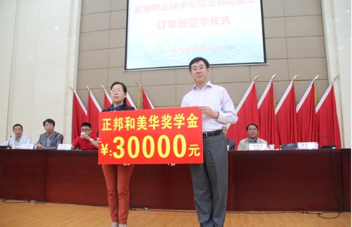 此次“正邦和美华”订单班签字仪式由生物工程学院党总支书记章伟主持,生物工程学院院长瞿宏杰教授对生物工程学院与正邦和美华开展订单培养的实施方案作了简单介绍并对和美华集团有限公司在畜牧兽医专业人才培养中给予的大力支持表示感谢。山东和美化集团有限公司董事长、总裁刘方波同志代表襄阳和美华饲料有限公司签订“正邦和美华”订单班协议并为订单班学生捐赠30000元奖学金并对订单班的学生提出要求,希望每位同学认真学习、掌握专业技能,理解科技占市场 服务得天下的理念,做一个有品格,有能力,信念坚定,为社会创造价值,为企业带来利益的人。