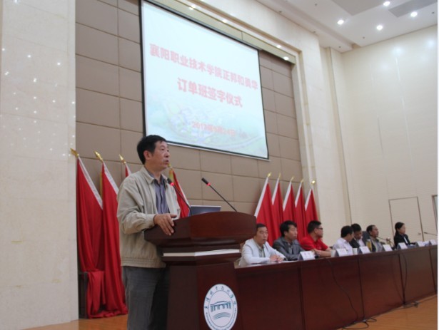 学院副校长陈琦对我院与正邦和美华有限公司的合作表示祝贺,同时希望校企双方密切合作,精心组织、科学安排,搞好订单班教学规划,将企业的先进设备、先进技术及经验用于职业技术教育中,培养出企业真正需要的高素质人才。