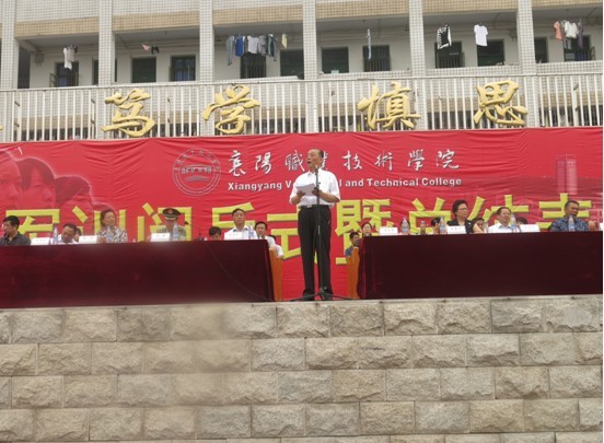 大会由学工处处长刘明辉主持。校长蔡泽寰教授检阅了受训学员各方队。军训学生雄赳赳、气昂昂,各个精神焕发、口号响亮。在整个阅兵过程中,各方队像训练有素的军人一样,充分展现了襄职学子良好的精神风貌。