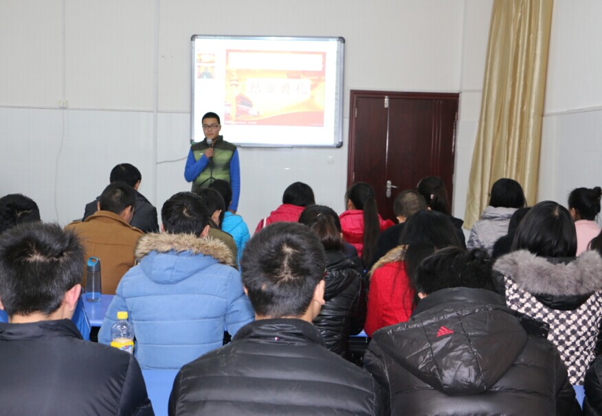 1月20日下午2点半,经济管理学院物流管理专业14级全体师生在物流实训中心迎来了第十讲国学课程《立志与人生规划》,这是本届国学班在14-15学年度上学期的最后一堂课程,由湖北小白象商贸有限公司国学部陈明霞老师主讲。陈老师的课程深入浅出,使同学们更加深入地理解了立志与事功之间的关系,学会了辨别“立欲”与“立志”的不同,并且对于古人“为天地立心,为生民立命,为往圣继绝学,为万世开太平”的家国情怀心生向往。