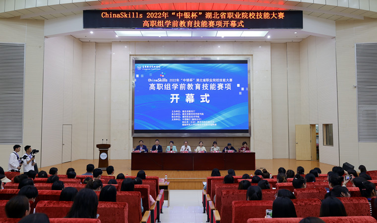 4月14日下午,2022年“中银杯”湖北省职业院校技能大赛高职组学前教育专业技能赛项在我校图书馆二号报告厅隆重开幕。来自全省的29所参赛高职院校齐聚一堂。湖北省教育科学研究院职教所副所长兰惠玲,大赛执委会主任、襄阳职业技术学院校长李菲,襄阳市教育局副局长伍倜,中国银行襄阳分行副行长苏红柳,教育部职业院校教育类专业教学指导委员会学前教育专业委员会委员、幼乐美(北京)教育科技有限公司教育事业发展中心总经理田久民,全体仲裁、裁判等出席开幕式。大赛执委会副主任、学校副校长耿保荃主持开幕式。