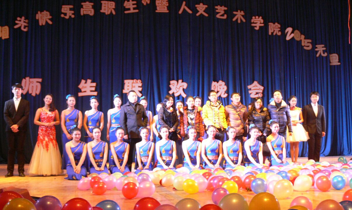 青春飞扬,彰显高职生风采;梦想起航,背上奋斗的行囊。12月28日晚,人文艺术学院在主校区大礼堂举行“我是阳光快乐的高职生闭幕仪式暨2015年人文艺术学院元旦师生联欢文艺晚会”。出席本次活动的领导有学校学工处处长刘明辉,人文艺术学院院长李炳顺,党总支书记杨华,副院长马仁海、汤才虎、吴中天,办公室主任杨辉,就业办主任吴卫明,教务科主任李兴兵,学工科科长彭建设,海天集团刘秋雨主任,各研究室主任,各专业辅导员以及各班级四位一体老师。