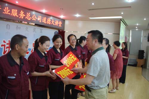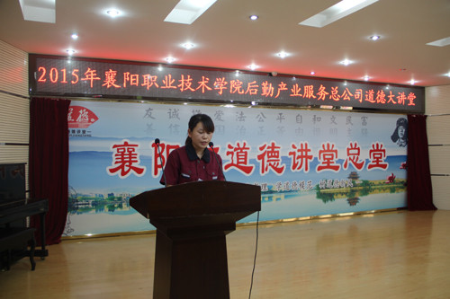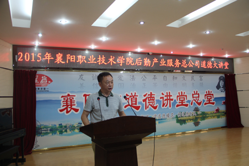 8月28日下午,由学校文明办主办、后勤集团总公司承办的2015年8月道德讲堂在南校区学术报告厅隆重举行。学校党委副书记刘爱平,副校长李伶教授,副校长程光富,学校副科级及其以上干部,后勤集团总公司全体人员共200余人参加了此次活动。
