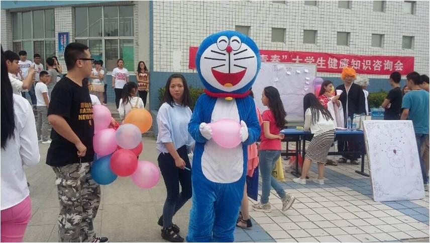 5月25日中午,在知恩堂广场开展 “让爱传递”“心语心愿”等现场心理咨询活动, 可爱的多啦A梦与学生们亲密的拥抱,赠送爱心气球,深受学生喜欢的时尚动漫cosplay团队现场发放心理健康知识手册等形式让活动现场热闹又温馨,吸引很多学生积极参入活动中来。