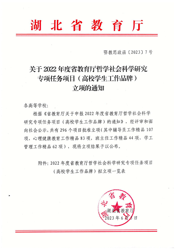 近日,省教育厅发文公布2022年度哲学社会科学研究专项任务项目(高校学生工作品牌)立项情况。我校陈秋实、张越等七名教师的项目获省级立项。