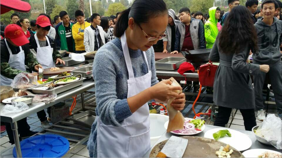 10月29日下午,在新校区生活服务中心门前广场由校文明办、学工处、团委、后勤产业服务总公司联合开展的第三届校园饮食文化节正式开幕!