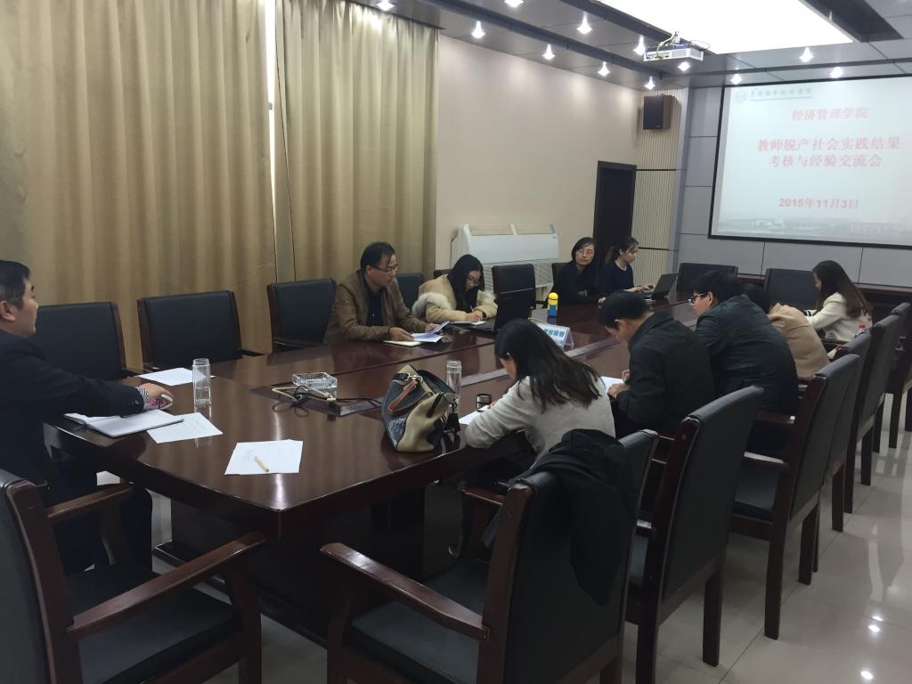 经济管理学院一直把教师联系服务企业实践工作作为提升教师的专业技能素质和服务企业能力的切入点,有计划地引导青年教师积极参与企业专业实践,安排专人对老师的实践过程进行管理。本次会议上经济管理学院近5年新引进教师、本学年度有企业实践任务的老师与参加考核的老师进行了经验交流。通过经验交流,青年老师们更清晰的认识到参与企业实践的重要性,熟悉了教师联系服务企业主要形式和内容。