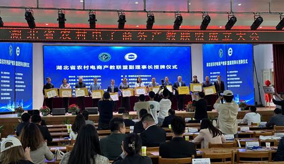 会议对当选的联盟成员单位进行了授牌,对当选的理事颁发了聘书。湖北省教育厅、湖北省农业农村厅、湖北省商务厅、全国电子商务职业教育教学指导委员会、中国服务贸易协会、湖北省电子商务行业协会,以及各地方电商协会、行业企业、高职院校、中职学校等150余名代表出席了联盟成立大会。