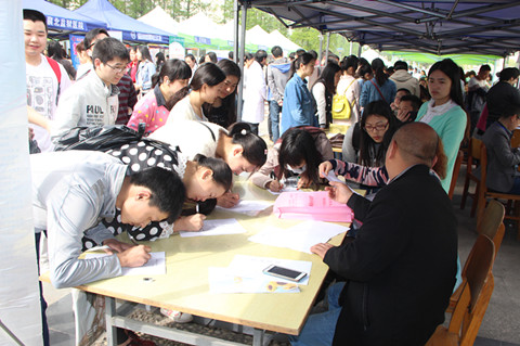4月16日,伴随着2012级毕业生结束临床实习返校,医学院迎来了每年一届的医药卫生专业毕业生校园招聘会。本次招聘会参会单位多达135家,为历年来参会单位最多的一次;其中省外29家,省内106家,乡镇卫生院51家。医学院两千多毕业生参加了招聘会,所到之处人山人海。本次校园招聘会主要有两大看点: