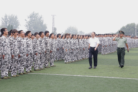 校长李菲博士检阅军训团,向圆满完成军训任务的新同学们表示亲切的问候。整齐的队伍,饱满的精神,震耳的口号,飒爽的英姿,自信的脸庞,昂扬的斗志,展示了当代青年学生的魅力与风采,昭示着我校的勃勃生机和美好未来。