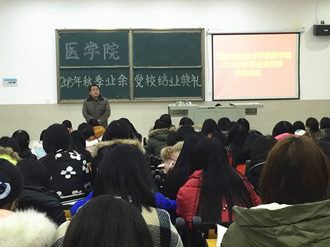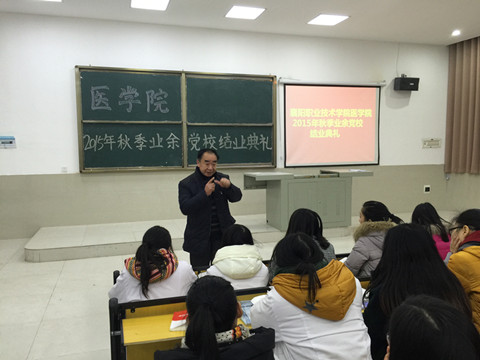 12月23日下午,医学院2015年秋季业余党校结业典礼在惠济楼阶三多媒体教室举行,学校党建组织员徐珍道、学工党支部书记吕学雷及各支部委员出席典礼。仪式由团总支书记何娟主持。