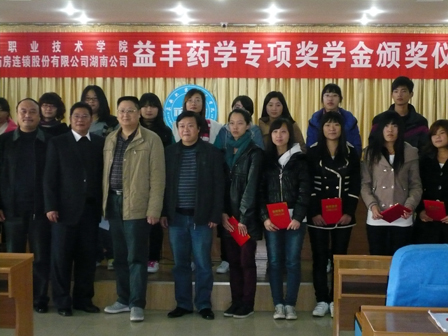 2011年11月10日上午,益丰药学专项奖学金颁奖仪式在南校区学术报告厅举行。益丰大药房股份有限公司总经理王平、医学院副院长张家忠等出席了颁奖仪式。颁奖仪式由医学院副院长佘传江主持。