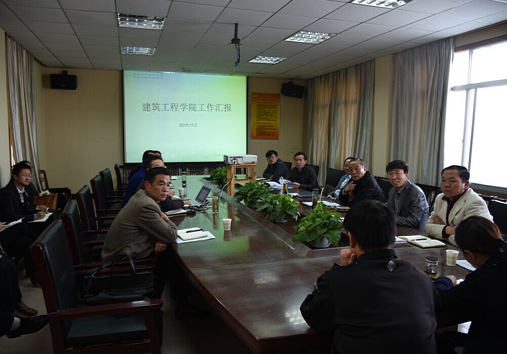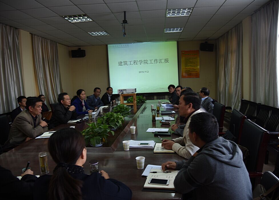 11月2日,校党委书记蔡泽寰教授、校长李菲、校党委委员余荣宝、教务处、学工处、产学研工作处等部门负责人到建筑工程学院为建筑专业把脉问诊。