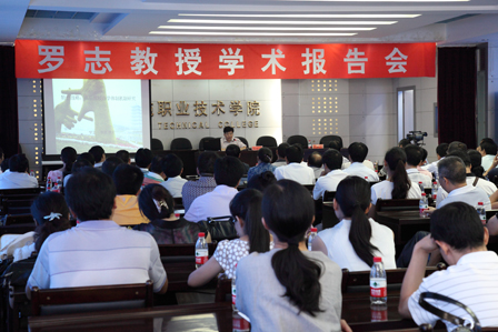 最后,与会人员共同聆听了全国高职教育研究会副会长、全国示范性高职院校建设项目协作会副会长、教育部权威专家罗志教授的“高职院校办学体制机制发展研究”学术报告。