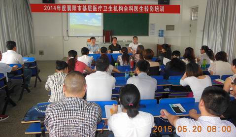 为深化医药卫生体制改革,建立健全基层医疗卫生服务体系,加强基层卫生人才队伍建设,提升基层医疗卫生人员全科医疗服务能力和水平。5月20日,由我校与襄阳市卫生计生委联合举办的2014年度基层医疗卫生机构全科医生转岗培训在新校区笃学楼开班。襄阳市卫生计生委副主任朱惠阳、学校副校长李保训及48名来自襄阳市各县(市)区的乡镇医务工作者参加了开班仪式。