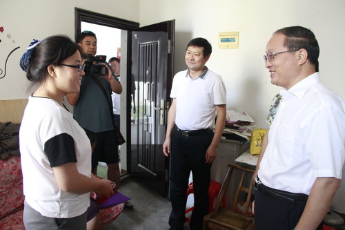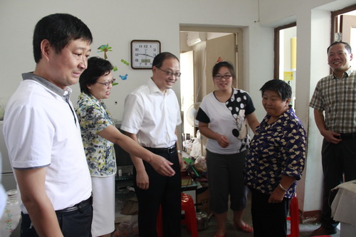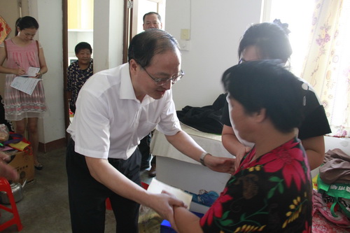 为深入开展党的群众路线教育实践活动,进一步践行我校“大爱”文化,7月24日上午,校长李菲、党委副书记刘爱平、党委委员赵涛、以及学工处和医学院的部分领导冒着酷暑看望慰问了学校医学院的“奔跑女孩”-2015年湖北省“荆楚楷模”李蕾同学一家。