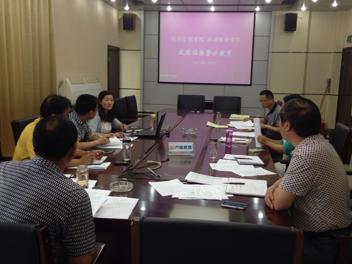 为切实加强党风廉政建设,落实学校党风廉政建设宣传教育月的相关要求,6月8日上午,经济管理学院旅游服务学院组织副科级及以上干部观看了反腐倡廉警示教育专题片《贪途欲海无归路》。