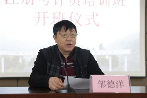 培训班由襄阳市人社局鉴定中心主任吴梦虎主持,湖北省人社厅职业技能鉴定中心副主任邹德洋作主题讲话,明确指出职业技能鉴定工作优质开展,离不开一支优秀的考评员队伍。省鉴定中心质量督导部部长王延诚分析了当前职业技能鉴定工作状况,讲解职业技能鉴定业务知识,考评人员主要任务、考评技术、考评人员管理等考评专业知识。继续教育学院院长董珍文感谢省市技能鉴定部门对我校工作的支持,并介绍了我校职业资格培训及鉴定工作开展情况。