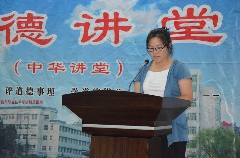 “合抱之木、生于毫末,千里之行,始于足下”,伴随着悠悠古风,襄阳职业技术学院2015年第7期道德讲堂于7月23日下午在附属医院举行开讲。学校党委副书记刘爱萍同志、副校长程光富同志、学校宣传部、汽车工程学院、后勤集团代表和附属医院职工等200余人一起聆听了附属医院社区卫生健康志愿服务团队的道德模范故事。本期讲堂由附属医院副院长魏军主持。