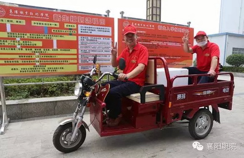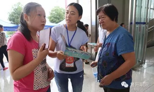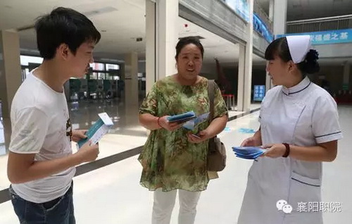 为了防止学生突发急病或其他意外,学校附属医院的医生们,每天坚持在迎新工作的一线,为学生发放传单,讲解医保卡的办理方式和一些医疗小常识!