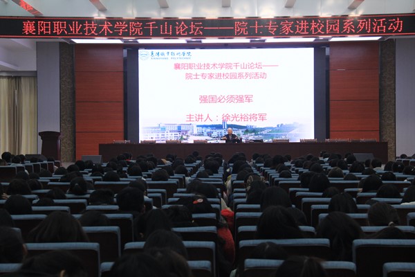 12月25日下午,著名军事专家、原总参谋部某部副部长、解放军防化学院原副院长徐光裕少将受邀来到我校,为700余名师生作“强国必先强军”国防教育专题讲座。学校党委书记陈礼龙、副校长章伟等出席活动。