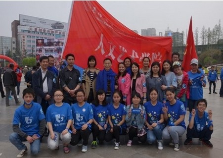 人文艺术学院教师和学生志愿者于3月30日周日上午到达人民广场参加襄阳市展颜特殊学校和襄阳市残联组织的关爱自闭症儿童的宣传活动。