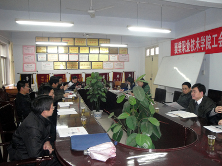 会上,工会综合部主任赵宗俊通报了襄阳市总工会《关于2010年度全市企事业单位民主管理星级评定结果的通报》、《关于2010年度全市工会工作创先争优和建会建制专项工作考核结果的通报》等文件相关精神。女工委主任林颖宣读了学院工会文件《关于表彰“巾帼建功岗”和“巾国建功”标兵的决定》。