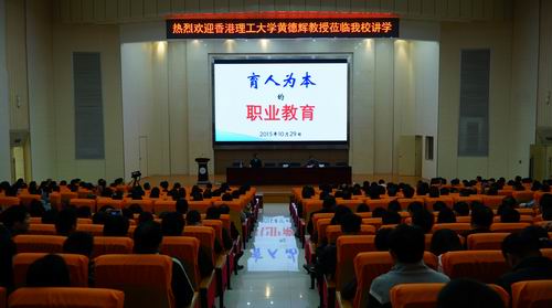 10月29日下午,香港理工大学工业中心首席项目主任、全国高职高专教育师资培训联盟顾问黄德辉教授应邀来我校为全校500多名教师作了一场题为《育人为本的职业教育》的专题报告。校长李菲博士等在家校领导出席了报告会,会议由教务处刘红新处长主持。