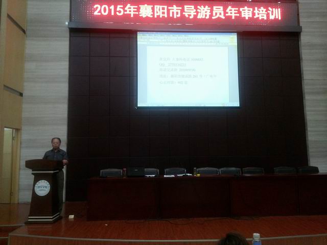 为使从业导游人员及时更新知识,掌握旅游发展新动态,襄阳市旅游局邀请旅游专家精心准备了四个专题讲座来对导游进行培训,包括文明旅游,引在导游;旅游常遇突发事件的处理程序与技能;建设汉江流域中心城市旅游业大有作为;“互联网+”给旅游业带来的机遇与挑战。培训专家以生动的案例及自身实践,由浅及深,风趣动人,收到了良好效果。