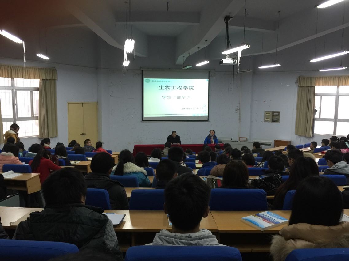 1月12日下午,生物工程学院在人文楼阶一教室隆重举行了2014年新一届学生干部培训工作的开幕式。我院共有160名学生干部参加了此次培训。