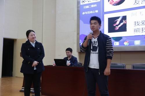 在现场互动中,采用湖北12355微信公众号“微信上墙”功能,现场抽取学生回答问题,内容包含了未成年人保护的相关内容,互动现场学生反响热烈,实现了寓教于乐。