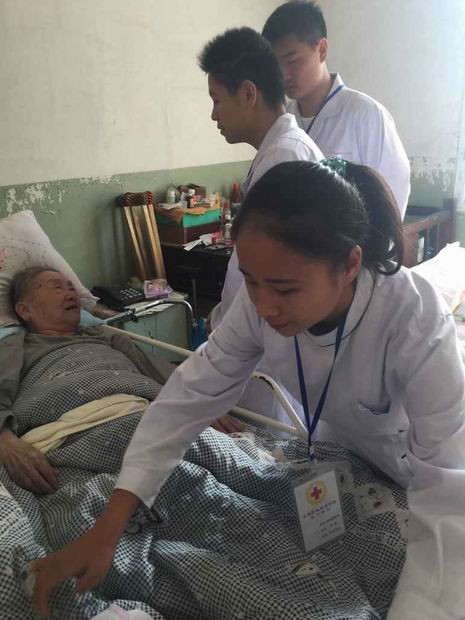 今天是中国的传统节日“重阳”节。离退休人员工作处生活科科长王勇带领工作人员及医学院8名学生志愿者分别到离退休老同志家中开展“尊老、敬老、爱老、助老”志愿者服务活动。