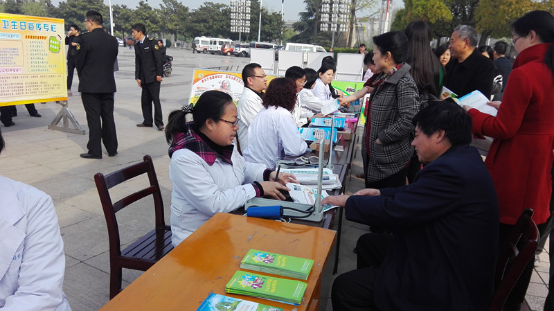 4月10日上午,附属医院联合襄城区真武山办事处在南湖广场举行了“爱国卫生运动”大型义诊宣传活动。