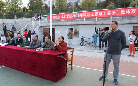学校党委书记蔡泽寰教授宣布篮球赛开始,同时他要求:“高校的社会功能之一就是引领文化、还需有一些健康、益智、培养团队精神的活动作为支撑”。各分工会要注重开展健康有益的活动,让广大教职工在运动中享受快乐,在快乐中愉快的工作。最后,蔡书记为第一场篮球赛开球。