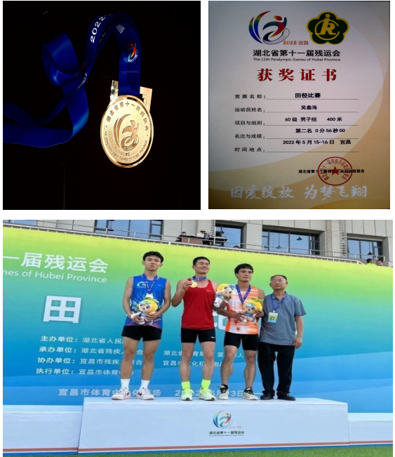 从湖北省第十一届残运会传来消息,在6月15日田径400米男子听力组赛项中,我校农学院食品2102班吴鑫海同学喜获银牌。这也是襄阳市在省残运会历史上获得的首枚田径男子听力组奖牌!