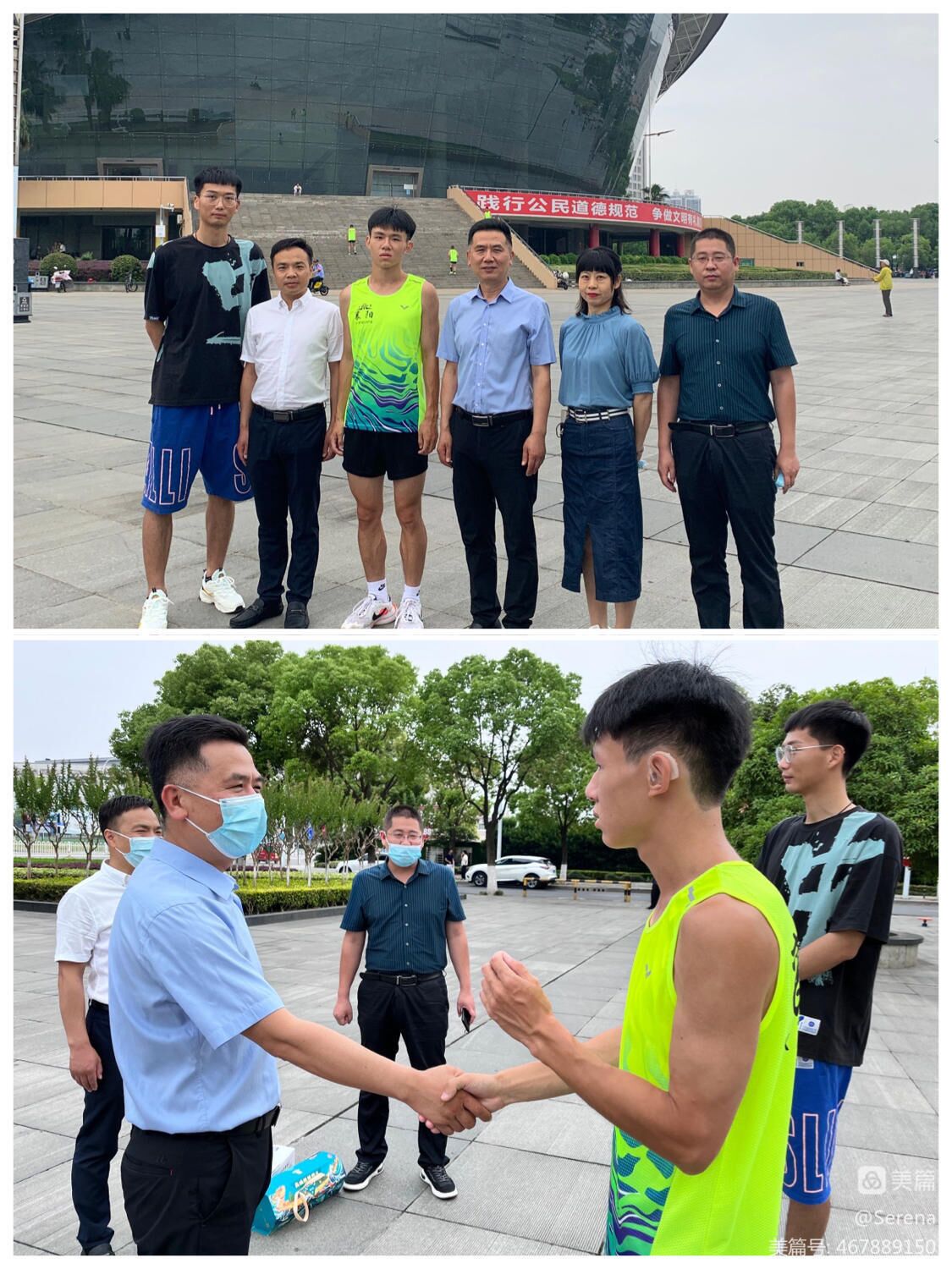 2022年6月1日上午,学校学工处处长但耀卿,农学院学工副院长陈杰军、辅导员郭金海、班主任朱晓俊,带着礼物和全院师生的祝福,为正在训练的吴鑫海同学加油打气。农学院师生录制加油打气视频,祝福吴鑫海取得好成绩!