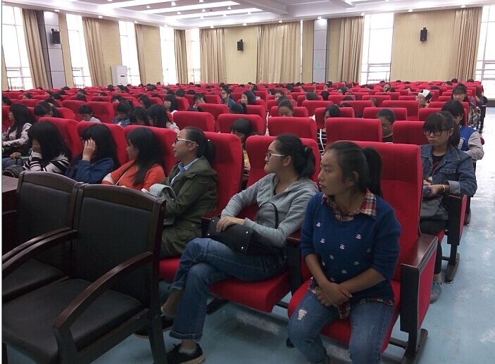 10月15日下午,经济管理学院15级会计专业女生在特教楼二楼学术报告厅聆听由医学院罗纯老师主讲的“女大学生性健康讲座”。