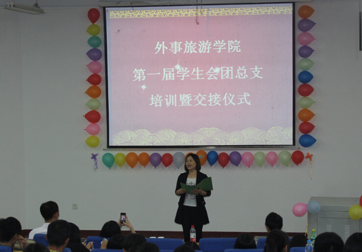 本着培养优秀学生干部,打造和谐校园的宗旨。外事旅游学院于10月18日下午,在明志楼召开第一届双代会成员培训暨交接仪式。出席本次大会的有外事旅游学院院长王惠教授、学工副院长涂进喜、学工科全体老师及学生会、团总支学生干部代表共计130人。