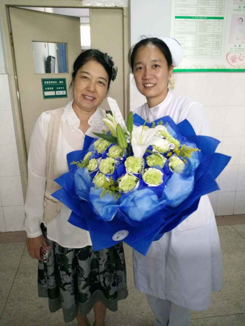 安葬好老人后,邢奶奶的儿媳捧来一束美丽的鲜花来到了护士站。她握着护士长的手说,谢谢你,护士长。请向你们科室的医护人员转达我们全家的谢意。是你们的精心照顾,让我的婆婆走的安心。我要把你们的照片传到我家的微信群,让大家都认识你们这些美丽的白衣天使。